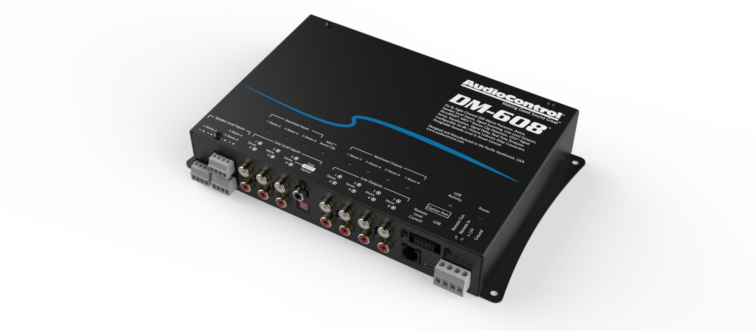 Seattle, WA, April 5th, 2017 – AudioControl (archive.audiocontrol.com), makers of innovative high-performance audio solutions for the residential, commercial and automotive markets introduces the DM-608 DSP matrix processor for automotive sound systems. The DM-608 gives installers a versatile processor with both high and low-level inputs for use in OEM interface applications as well as with an aftermarket head unit. The 6-input/8-output configuration along with a revolutionary user interface makes the DM-608 an intuitive and effective path to optimizing system performance and delivering the finest automotive sound to consumers.